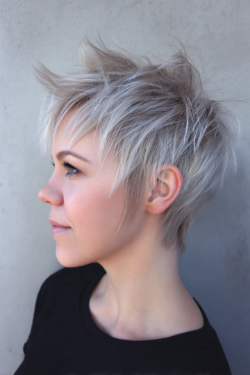 Short choppy ash blonde hair has so much attitude! Choppy layers give tons of texture and ash blonde keeps it modern.