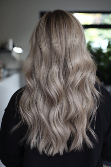 Long cascading ash blonde is princess hair lol. When it’s this long, the ash blonde creates a waterfall effect with tones all through it.