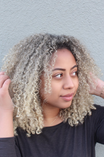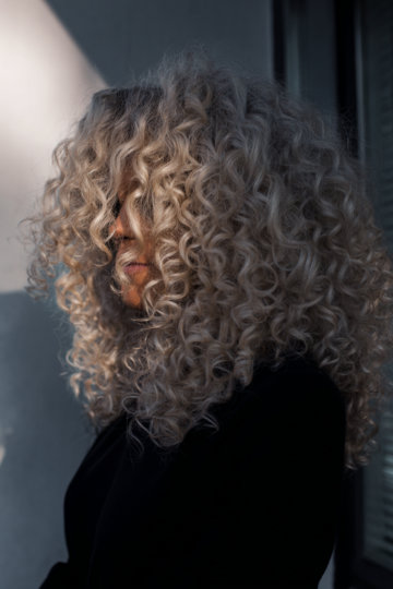 Lush curls in ash blonde shows off all the texture super well and creates a really unique look. Every curl catches the light in a very pretty way, and it’s just beautiful to look at.