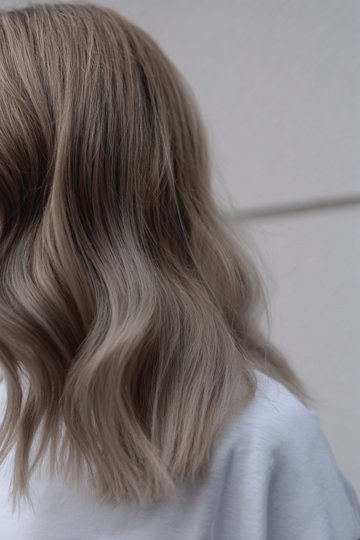 Everyone is getting this color right now, I literally get tons of requests! Mushroom blonde mixed with icy tones – it’s so different and elegant. Way softer than platinum, which I think looks better on most people.