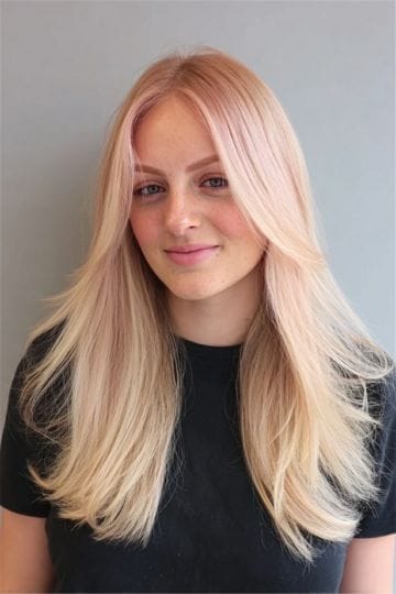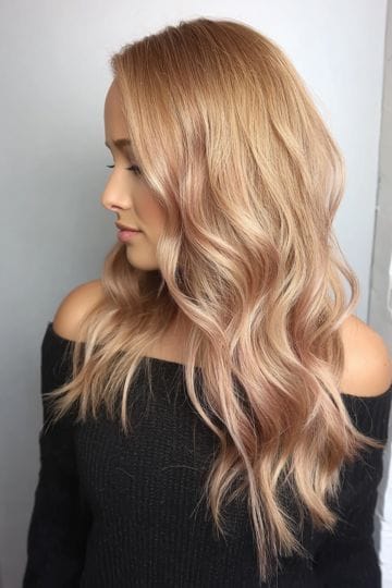 Rose gold blonde: a Pinterest favorite—and not just for home décor. This shade blends rosy pink and subtle bronze atop a blonde base, creating a shimmery, romantic effect. Especially stunning on skin with pink undertones or anyone wanting to try something trend-forward…without bleaching the joy out of their hair.
