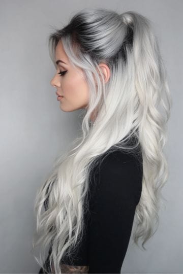 Black rooted platinum blonde is equal parts punk rock and Parisian chic. Keeping those roots dark (almost black) while bleaching the lengths platinum makes regrowth a feature, not a flaw. Plus, it gives the whole look major edge. Great if you’re lazy with touch-ups but still want dramatic contrast. Your ponytail will look epic.