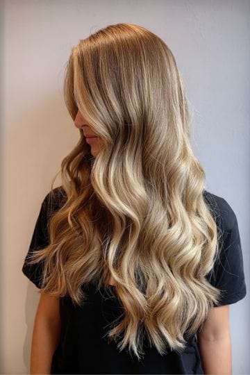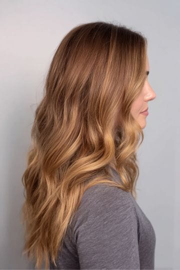 Craving warmth? Caramel blonde balayage is basically dessert for your hair. Deep, sticky-sweet caramel tones melt from a darker base into lighter ends for a seamless, natural ombré. Great for brunettes flirting with lighter shades without the bratty bleach drama.