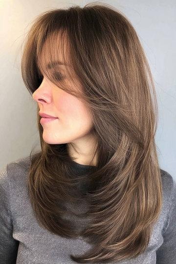 Warm Mousy Brown Butterfly Cut with Soft Side-Swept Layers