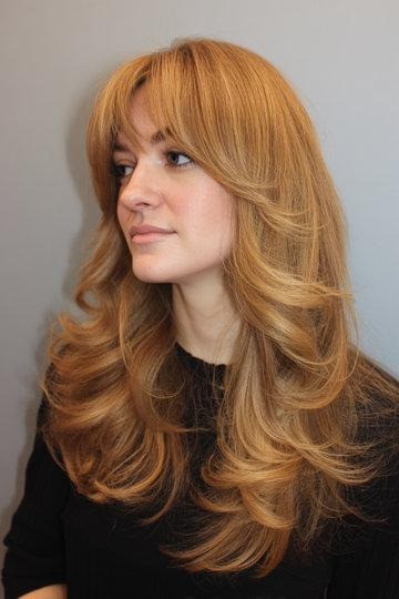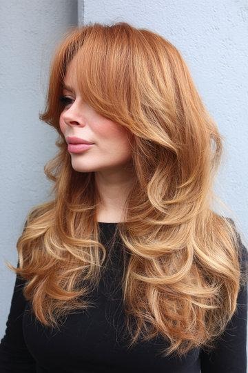 Strawberry Blonde Butterfly Cut with Wavy Romantic Layers