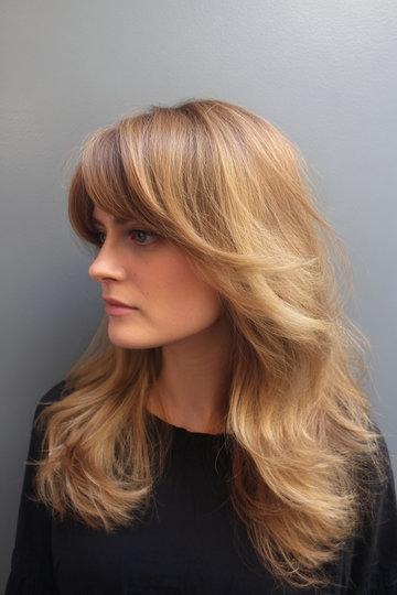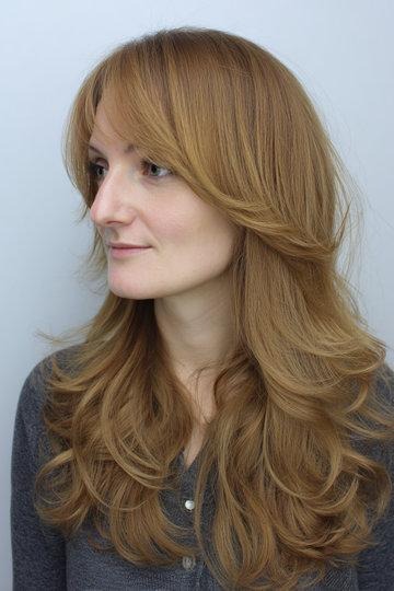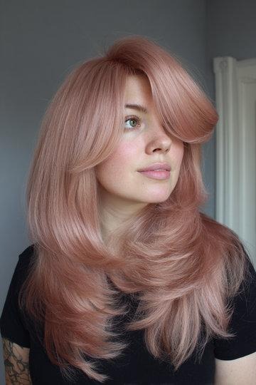 Rose Gold Butterfly Cut with a Swoopy Statement Bang