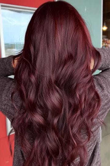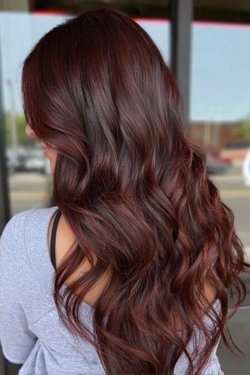 Burgundy hair in fall is a little daring, bold, and mysterious. Love this vibe? So de we. This shade straddles that line between red and purple, giving major depth and shine to brown hair. Understated? Not so much, but who cares when you look like a 90s supermodel (and you will).