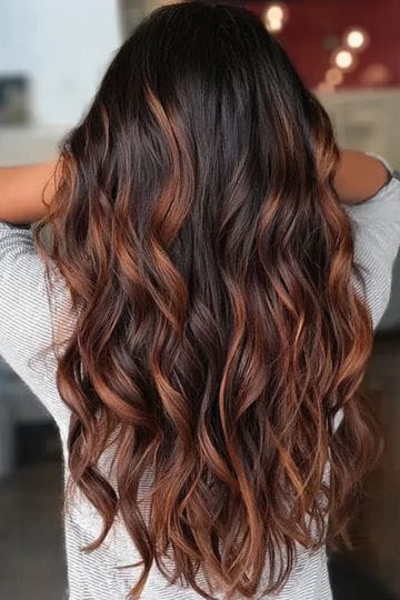 Auburn melt is autumn sunrise, but like, make it hair. This ombre-inspired trend starts with rich brunette roots, melting seamlessly into spicy auburn and fiery copper ends. It’s for the bold—but also for anyone obsessed with Instagram-worthy color. Works just as well with curls or sleek styles, and always turns heads.