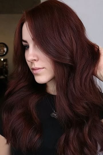 Dark auburn is what happens when your hair decides, “Yeah, I want to be mysterious and a little spicy.” It’s deeper than your basic red, with berry undertones that make green eyes practically glitter. In low light, it reads brown and glossy, in sunlight—those ember-reds come alive. It’s got drama, without being high-maintenance-actor-level dramatic.