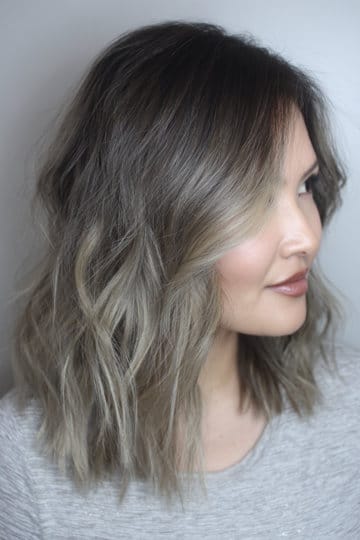 Soft wavy lob with shadow root