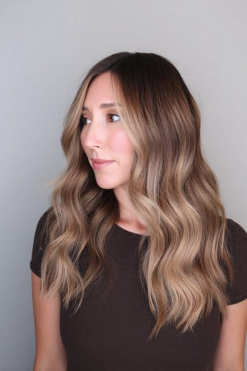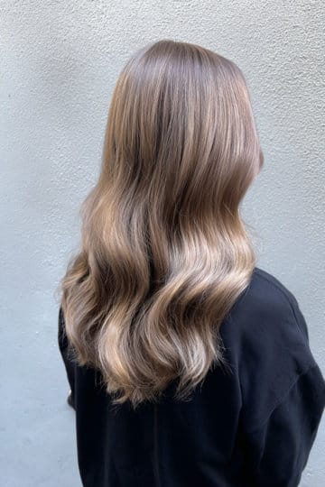 A good ol’ lived in balayage is low maintenance hair’s favorite, diffused blonde shade and natural light brown root – dimensional and forgiving. Effortless but intentional. Long hair loves the gradient darker at the root and glowing at the ends, it fades soft between appointments and ages well every season.