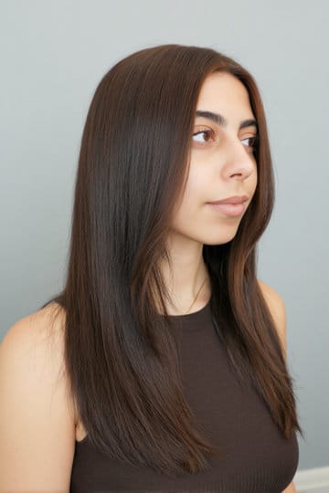 Chocolate brown with subtle face-framing layers