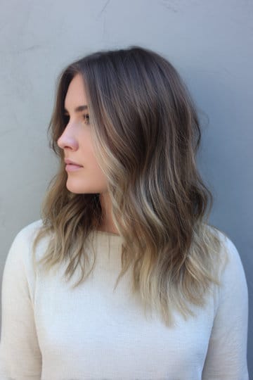 Yes grown out highlights can look intentional. Like sun faded ends with a natural root, on a layered lob the contrast adds depth and movement. The vibe is vacation without the airport, kind of similar effect to balayage, but more subtle with more of your base color showing – minimal salon visits and maximum attitude.