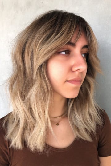 Shoulder shaggy cut with airy fringe