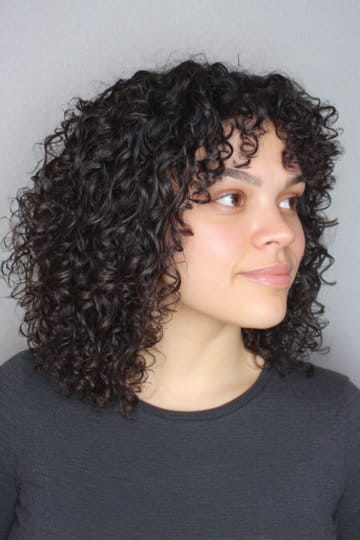 Now, can curly hair be low maintenance too? Absolutely! Thi curly lob does great in a rounded shape, curls stack neat and the halo feels balanced. A sculpted shape keeps volume even so your not triangular or flat on top, the outline grows out beautifully because density gets distributed nicely with this rounded cut. Curls look even more accentuated with an airy cut like this one, which means you need to put less effort into making them look defined! A total win.