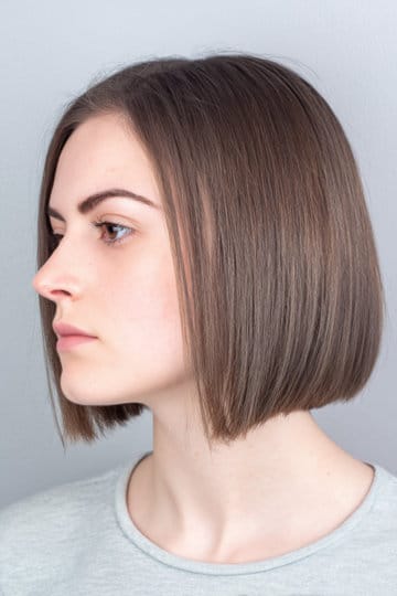 Chin-length ash brown French bob