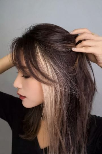 Platinum white peekaboo is ice-cold chic. Think winter queen but low-key. A stark platinum layer under darker strands makes for sharp contrast and loads of visual interest. The look is both modern and timeless, perfect for anyone who can’t decide between gothic and glam.