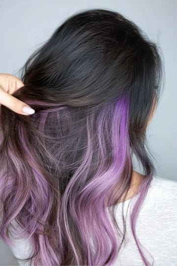 If subtlety is not your thing, vibrant purple peekaboo hair practically screams royalty— or, maybe just “Yes, I did watch too much Lizzo this weekend.” This look is rich, saturated, and unapologetically cool. Purple pops best under black, brunette or even platinum, offering up amethyst drama that peeks out with every step. Unexpected, a bit rebellious, and destined to rack up compliments in those elevator rides that would otherwise be painfully awkward.