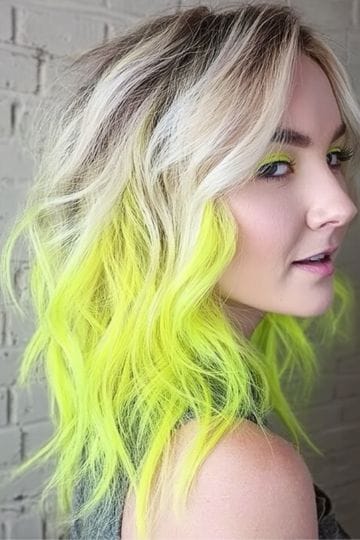 A pop of neon yellow under the surface can borderline cause traffic accidents (in a good way). It’s bold-happy, and totally out there. Neon yellow stashes best under brown or black hair, where it zings out unexpectedly when the light is right. The look is perky, ultra-modern, maybe even a lot rebellious. If you want highlighter hair without the full commitment—peekaboo was made for you.